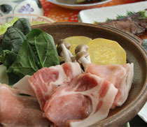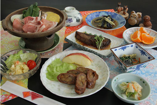 旬の地元食材を使った和洋折衷の料理は日替わりです。お肉の陶板焼きや、季節によってはお鍋をご提供しています。
